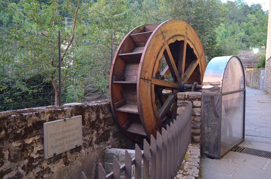 Percorrendo il corso d’acqua è possibile ammirare le antiche mura di cinta del paese e alcuni accessi portano nel centro del paese. Passeggiando in questi piccoli vicoli si giunge al Pastificio di Armando Amidei (attivo dal 1926 al 1946) dove si può vedere “El Rondon” la ruota idraulica in legno che produceva l’energia meccanica necessaria al funzionamento delle impastatrici. Lungo il canale di raccolte delle acque è collocato anche un antico lavatoio del 1895.