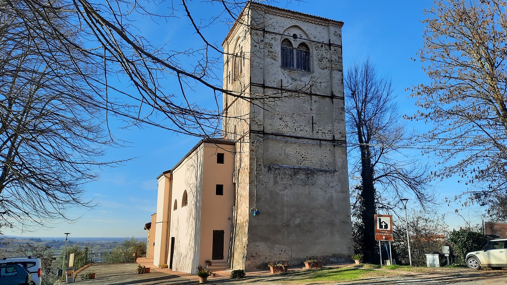 Sul lato esterno della chiesa sorge la torre campanaria dove al suo interno sono alloggiate quattro campane, la più antica fu fusa nel 1435.