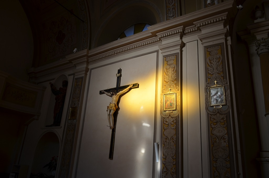 Nel pomeriggio i raggi del sole entrano dalle finestre colorate e l’effetto dei colori sulle pareti è molto suggestivo… guardate che meraviglia il crocifisso illuminato dal sole!