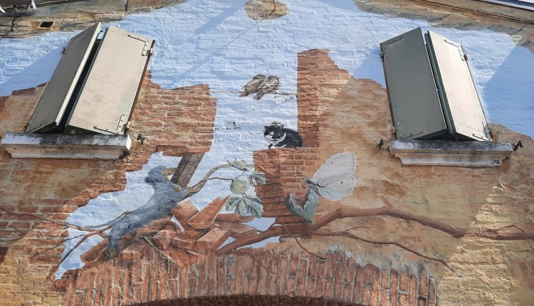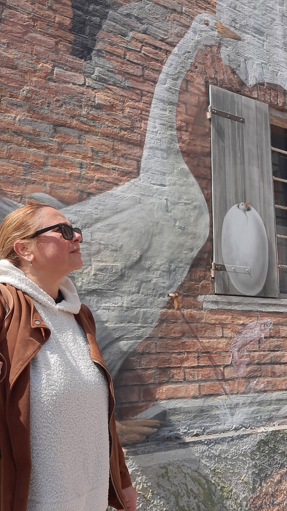 Sicuramente il muro con rappresentata un oca gigante, non sembra appena uscita da una favola!!!