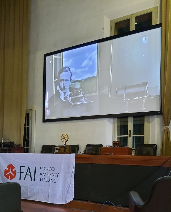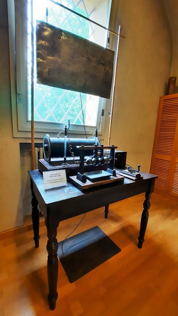 Al primo piano si trova una grande aula magna; qui abbiamo assistito ad un filmato che raccontava la storia della prima trasmissione radio a distanza effettuata da Villa Griffone oltre la collina dei Celestini nel 1895.