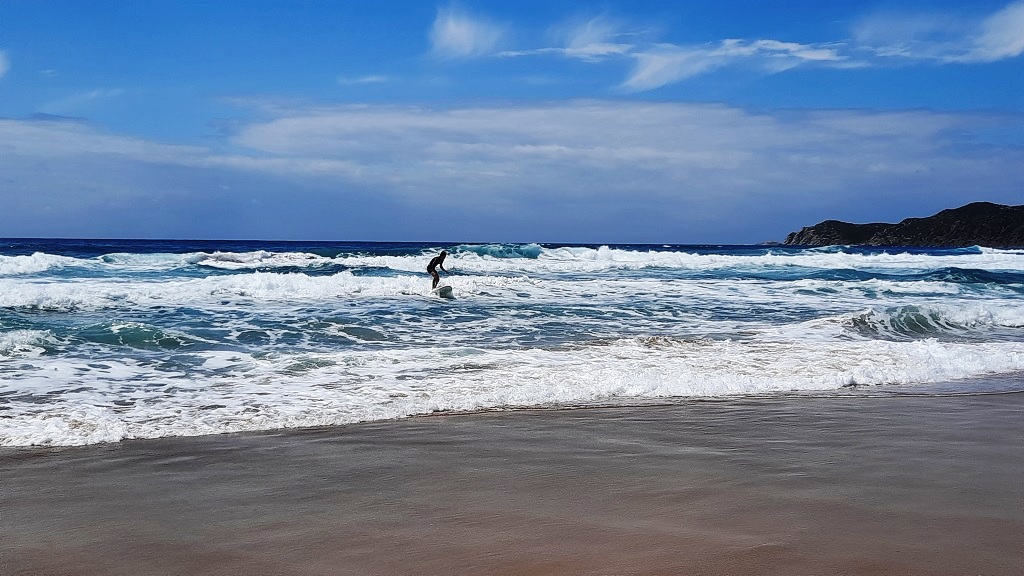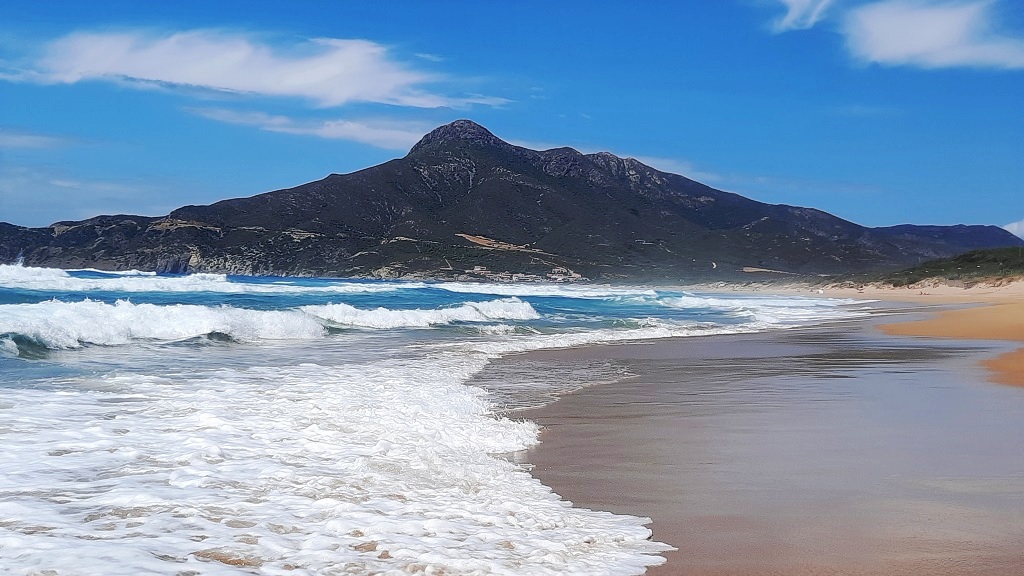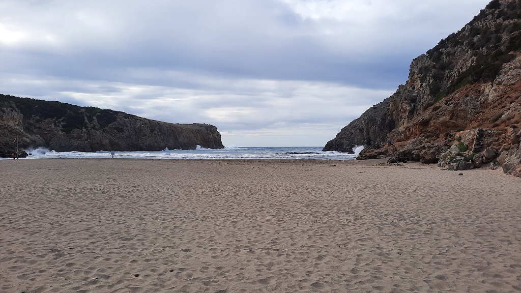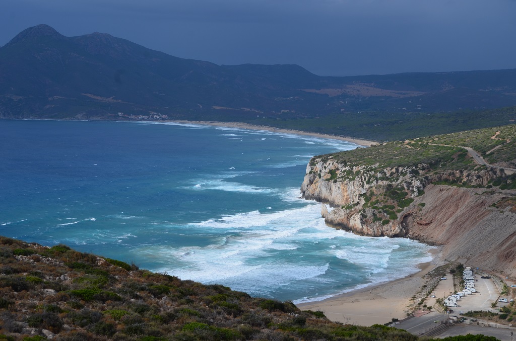 In fondo al paese è presente una bella spiaggia di sabbia libera di grandi dimensioni; in questa zona il mare è spesso mosso e per questo motivo è facile intravedere surfisti in azione. A pochi passi dalla spiaggia è presente un’area di sosta per i camper, noi avevamo soggiornato qui l’ultima volta che eravamo venuti in Sardegna con il camper.