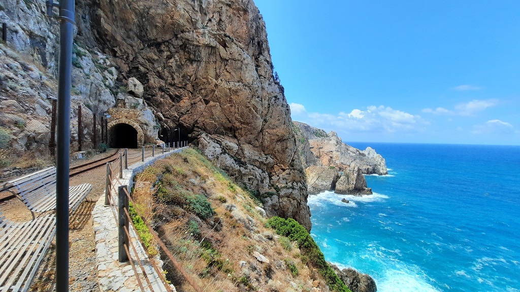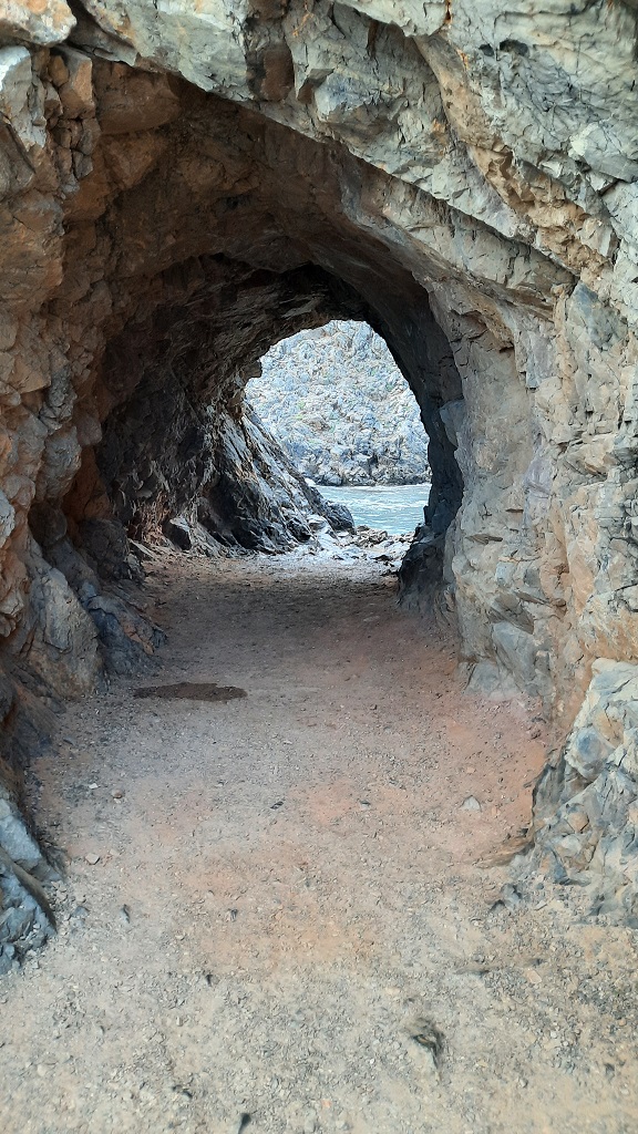 Al ritorno si ripercorre a piedi il percorso di circa un chilometro lungo la vecchia galleria ‘pedonale’, un tempo percorsa dai muli da soma. Questi camminamenti scolpiti nella roccia sono prevalentemente al buio interrotti ogni tanto da grandi aperture affacciate sul mare che offrono scorci e scenari incredibili sulla costa.