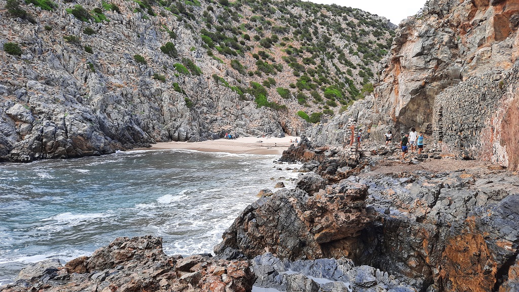 Percorrendo il sentiero che costeggia il lato destro della spiaggia lungo la scogliera si raggiunge un arco naturale oltre al quale si trova una piccola caletta, conosciuta come Sa Caletta.