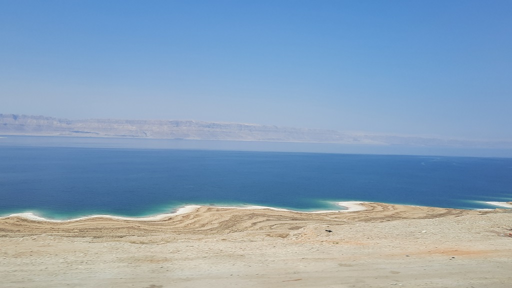 Dopo diverse curve in mezzo ad un territorio molto “lunare”, abbiamo raggiunto il Mar Morto, un grande lago caratterizzato da un’altissima salinità, è anche il punto più basso della terra in quanto è situato a circa 400 metri al di sotto del livello del mare.