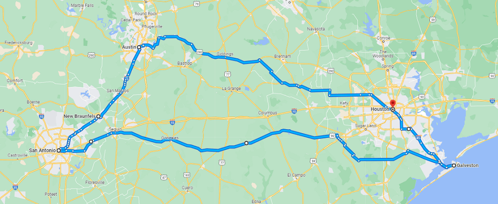 Houston – Austin – New Braunfels e Gruene- San Antonio – Galveston – Houston
