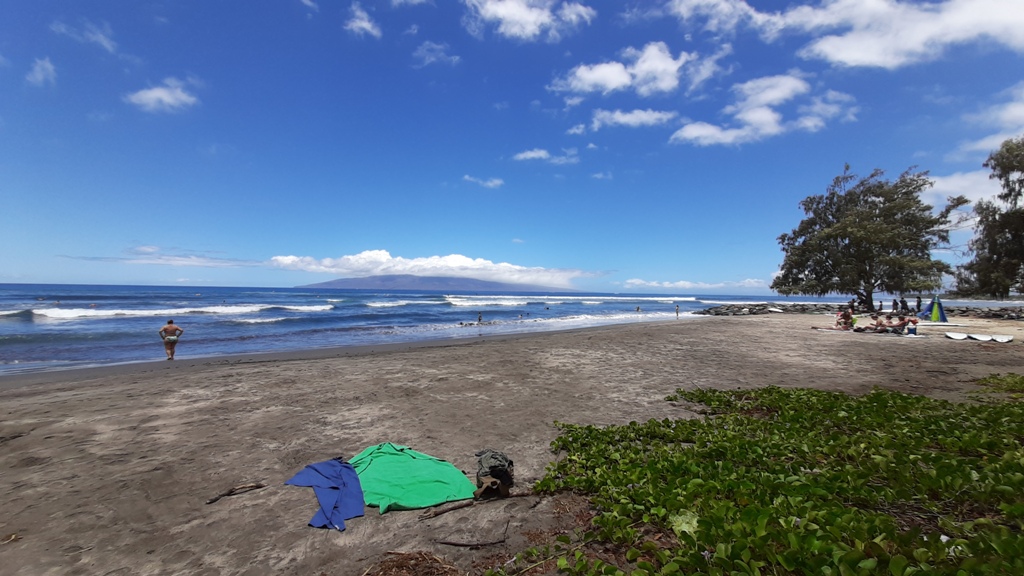 Il programma era quello di vedere lo IAO Valley State Park ma il tempo pessimo ci ha fatto cambiare idea e ci siamo recati sulla costa ovest dell’isola alla ricerca di una spiaggia dove trascorrere la nostra giornata. Purtroppo il tempo non è stato dei migliori e siamo riusciti a sostare solo un paio di ore presso Launiupoko beach park, una spiaggia frequentata dai surfisti. Alle spalle della spiaggia è presente un bel parco dove è possibile sdraiarsi all’ombra di alti alberi.