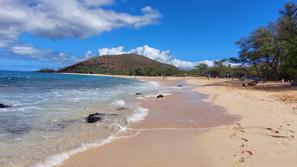 Al rientro verso Kihei abbiamo fatto il primo beach stop presso Makena Beach, una spiaggia lunghissima di spiaggia fine color ocra e con una acqua azzurra da lasciare a bocca aperta.