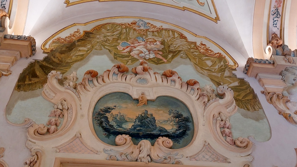 Al primo piano si trova la Galleria degli Stucchi, una bellissima galleria in stile rococò.