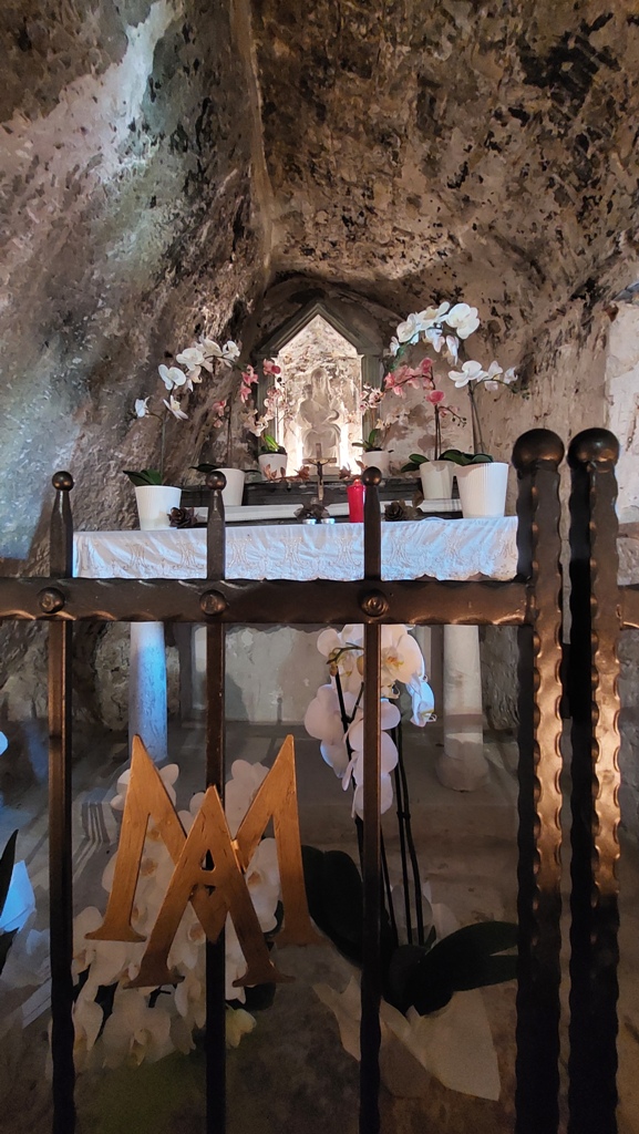 Di fianco al tempio sorge l’Eremo di Santa Maria Infra Saxa, costruito parzialmente nella parete della grotta.