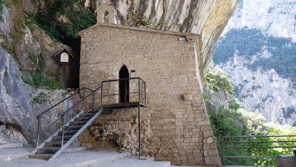 Il Tempio del Valadier è un santuario ottagonale in stile neoclassico incastonato tra le pareti rocciose del monte sovrastante; una struttura formata da pareti in marmo travertino sovrastata da una cupola rivestita in piombo.