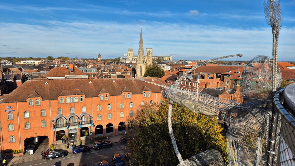 La York Minster possiede anche due torri gemelle alte 72 metri, sopra alla Central Tower, è possibile salire; 250 gradini percorsi su una scala a chiocciola, portano in cima alla torre da dove si può godere di un magnifico panorama sui tetti dalla città (per salire sulla torre occorre pagare un supplemento).