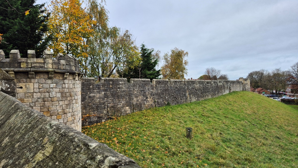 Lasciando Foss Island Rd, siamo salite sulle mura medievali della città. Le mura sono molto ben conservate con i loro 3,4 km sono le mura medievali più lunghe in Inghilterra.