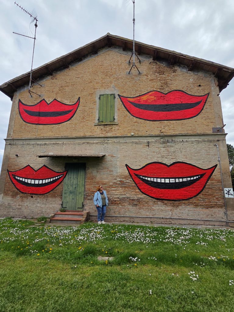 Descrizione del murales: un omaggio a Pupi Avati che con questo film, ambientato nella nebbiosa pianura ferrarese, da’ vita al “gotico padano”. L’intento dell’artista è stato quello di coinvolgere l’intero edificio facendolo diventare parte integrante dell’opera muraria, dipingendo su di essa delle bocche che ridono.
