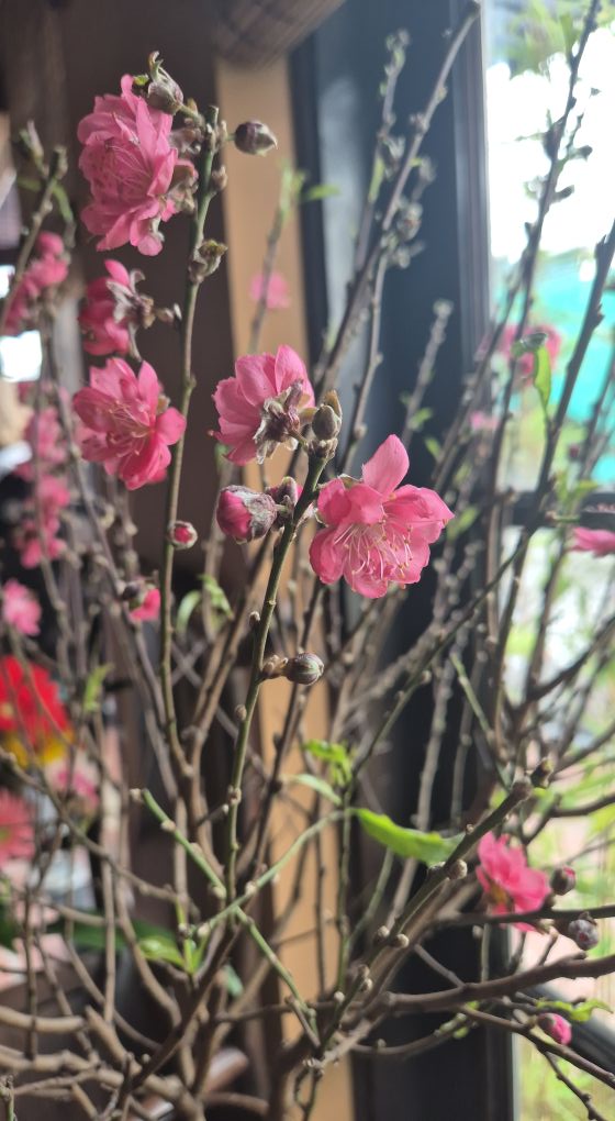 Le case in questa occasione vengono decorate con fiori. Al nord predomina il pesco (hoa đào), con i suoi fiori rosa, mentre al sud prevale l’albicocco giallo (hoa mai). Si usano molto anche i kumquat, simbolo di fertilità e abbondanza.